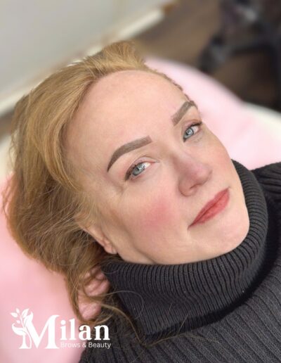 A soft powder brow technique that creates a natural, makeup-like finish with smooth color transitions. Ideal for clients who want defined yet subtle brows that enhance facial features and stay beautiful every day.